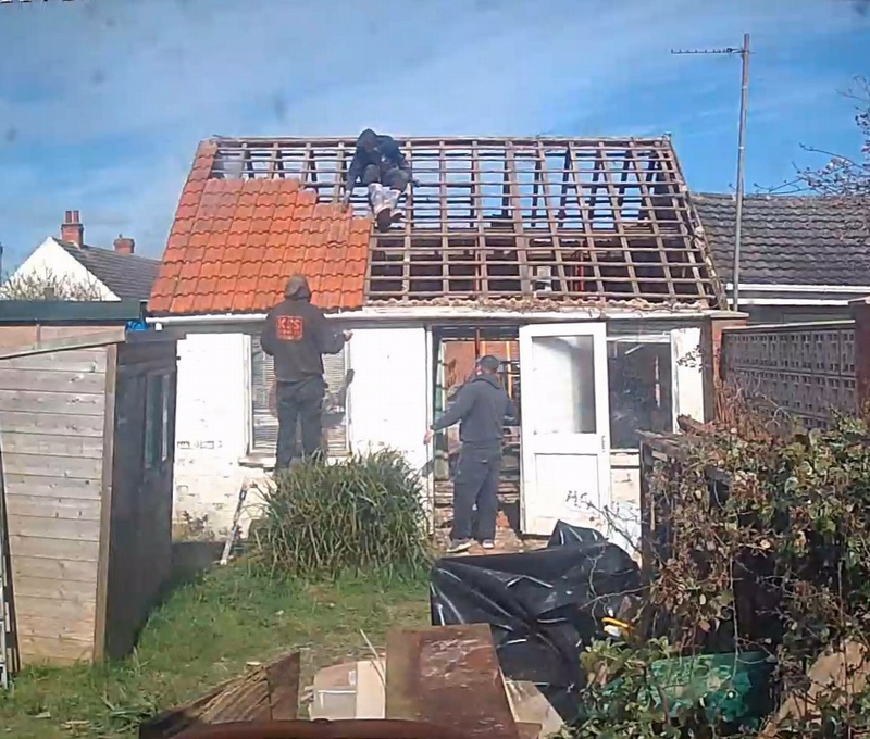 Next the roof timbers were removed as were the two gables. The forecast was for 50mph gusts overnight and we didn’t want to risk leaving them up.