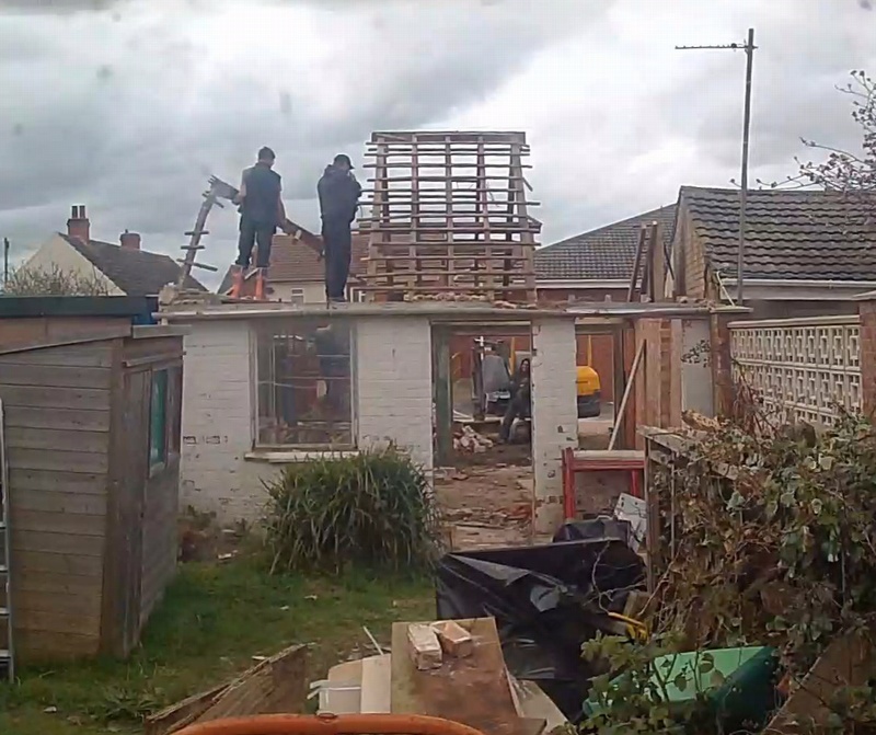 The plan had been to remove the roof, demolish and rebuild the front and back walls further out, and then re-roof. However, the builder suggested that it would be quicker and easier and, therefore, cheaper to demolish it completely and build up from a cleared site. That method would save having to tie new brickwork into old and we would not have to deal with inadequate existing foundations.