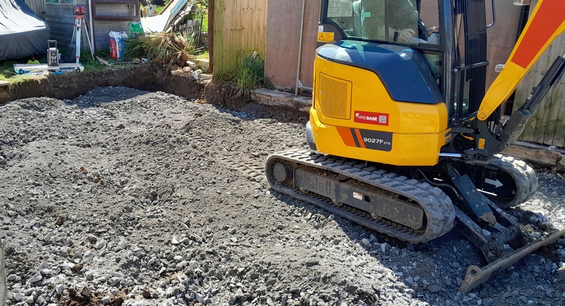 The next job was to construct a ramp at the front which was followed by several tonnes of gravel to bring the levels up to scratch.