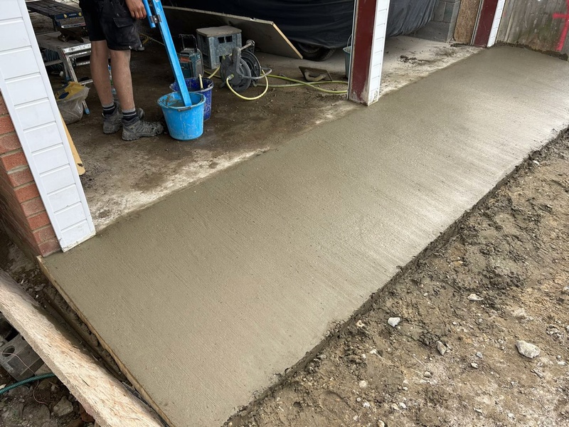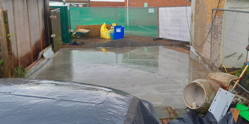 Of course ... it rained that evening! Fortunately the concrete had had long enough to achieve its initial set so the rain actually helped.