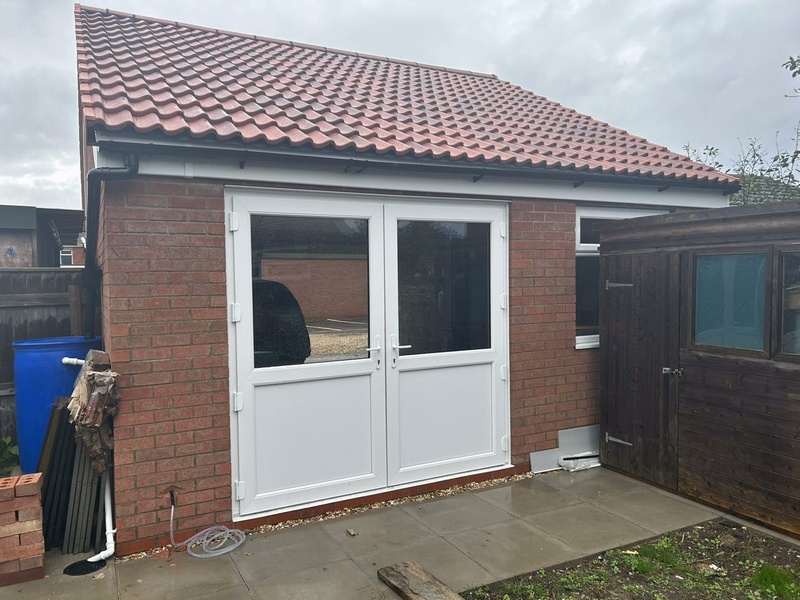 We were then able to move my shed back into position on its new slab and the building was finally completed with the new doors. I wanted a 2 metre clear opening so that I had the option of moving a car into the garden if I needed the space inside the garage. The local double glazing firms were not willing to help since they were wider than standard, so they were made by a specialist who was happy to fulfil my needs.
