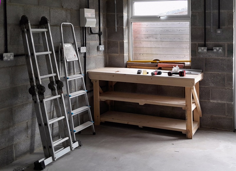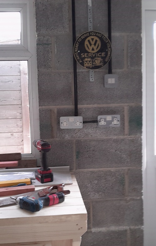 The consumer unit in the back corner. The car is on the lift whilst work was completed on the floor.