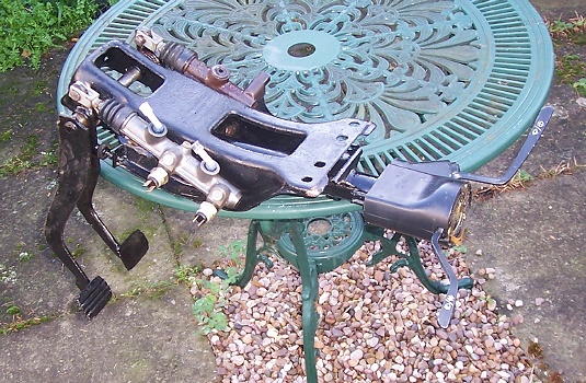 The pedals and master cylinders are mounted on a subframe which I have had to refurbish. I have experienced problems on both my 412s with the pedals stiffening up and even squeaking in use. So I paid special attention to these bearings whilst I had the mechanism apart for cleaning and repainting.