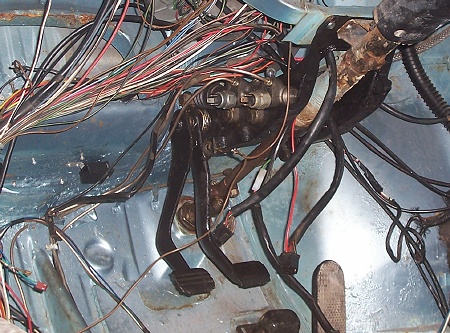 I installed it into the car along with the old steering column. This is the brake cylinder side, the front and rear brake lines are connected in and I have yet to connect the wiring to the three-pin brake light switches now fitted. I also have to tidy up the wiring!