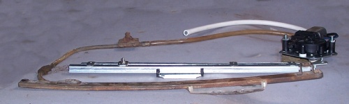 The new mechanism compared with the original rear door mechanism. The old slide is slightly shorter than the new but there are differences in the position of the attachments. This too will have to be curved to match the existing.