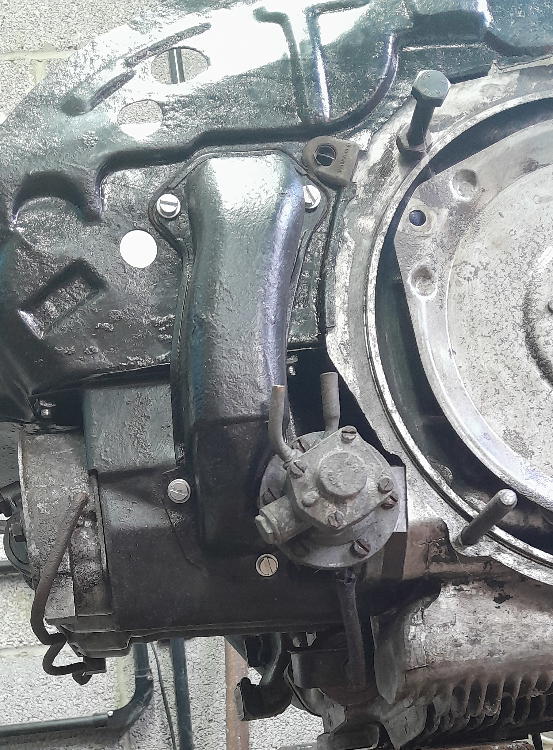 My next job was to clean the outside of the crankcase thoroughly, it was well coated with a hard baked layer of oil and dust which took some shifting. My initial attack with a proprietary cleaner followed by a pressure washer didn’t shift it all so I realised that I needed something stronger to shift the rest. I tried brushing on some petrol which seemed to do the trick. It managed to penetrate the baked gunge but needed several applications and a stiff brush to shift it.