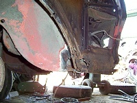 After working on the rust with a wire brush, I found the extent of the hole at the rear of the wheel arch. |