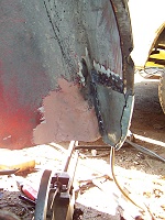 | A patching plate was cut and here it is being offered up to check for fit. |