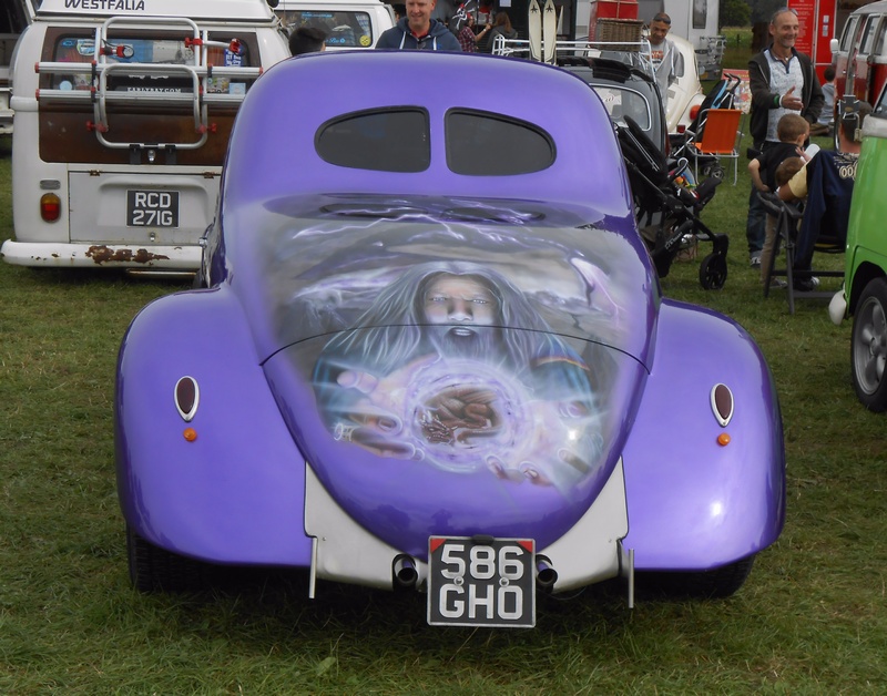 A heavily customised Beetle with stunning artwork on the engine lid.